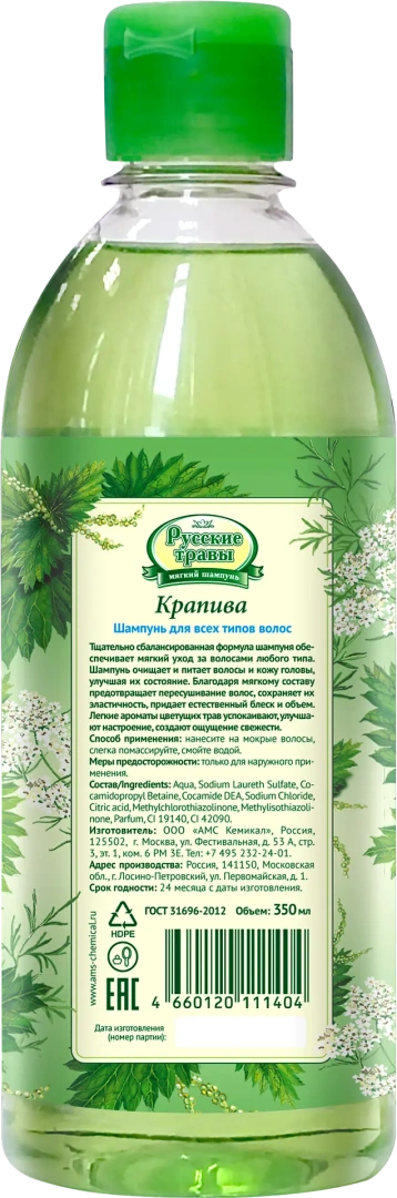 Шампуни и гели для душа: Шампунь Русские травы 350мл Крапива