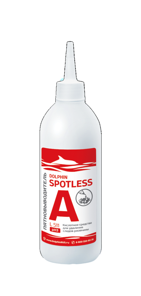 Dolphin: Спотлесс-Эй 500мл кислотный пятновыв. для удаления следов ржавчины, кофе, чая и тп.