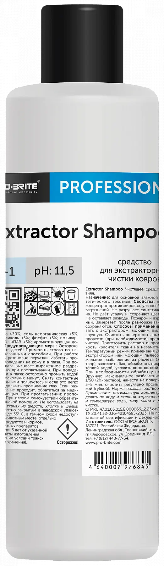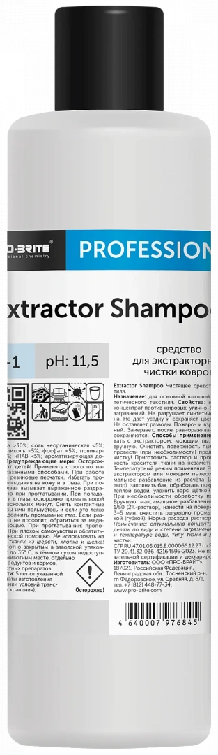 /шт.EXTRACTOR SHAMPOO 1л для экстракторной чистки ковров. Для основной чистки влажной синтетического текстиля.
