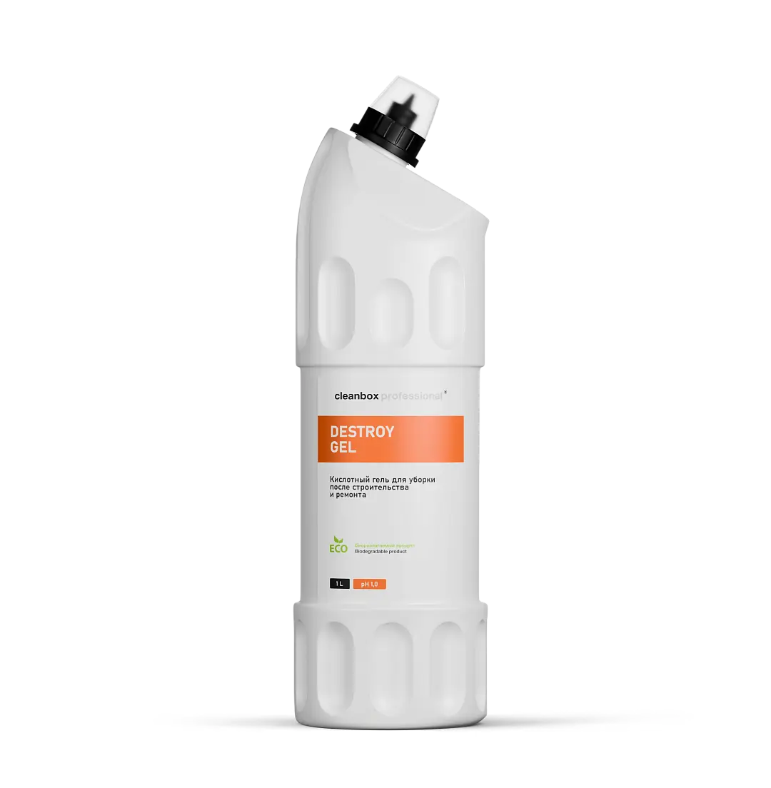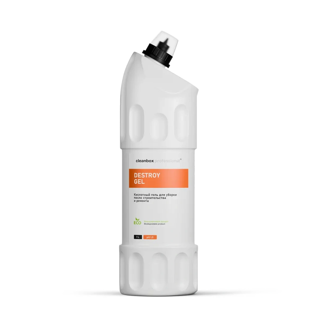 Кислотный гель для уборки после строительства и ремонта. Эффективно удаляет остатки цемента и строительные растворы на его основе, гипсовые загрязнения, следы от затирок и строительного клея, водный камень, солевые отложения, высолы, ржавые подтеки и другие минеральные загрязнения с любых кислотостойких поверхностей (гранит, керамическая, кафельная и облицовочные плитки, стекло и др).