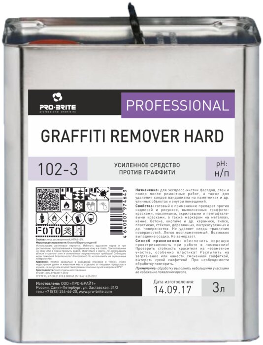 Pro-Brite: Граффити Ремовер Хард 3л для экспресс-чистки стен и полов после ремонта
