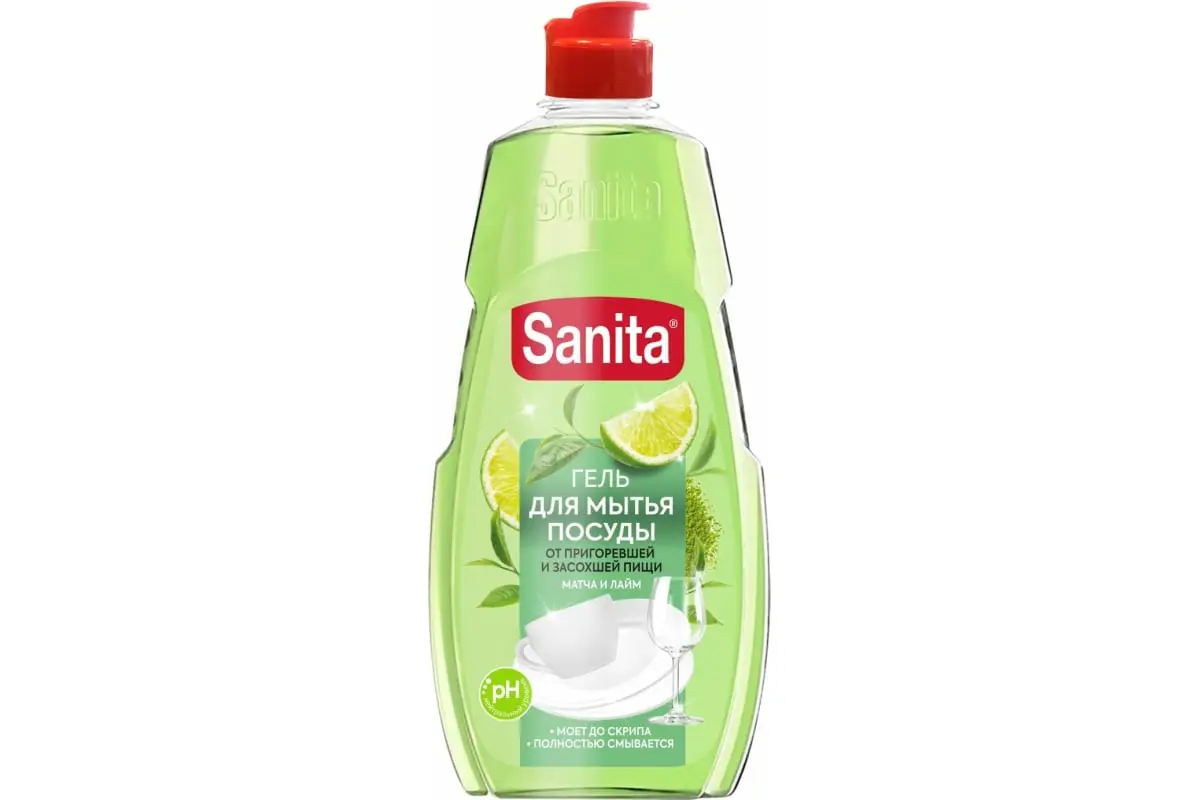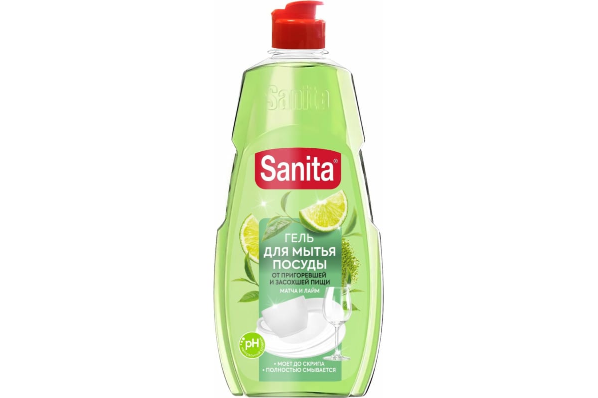 Моющее средство: САНИТА 450г гель Матча + лайм от засохшей пищи и жира