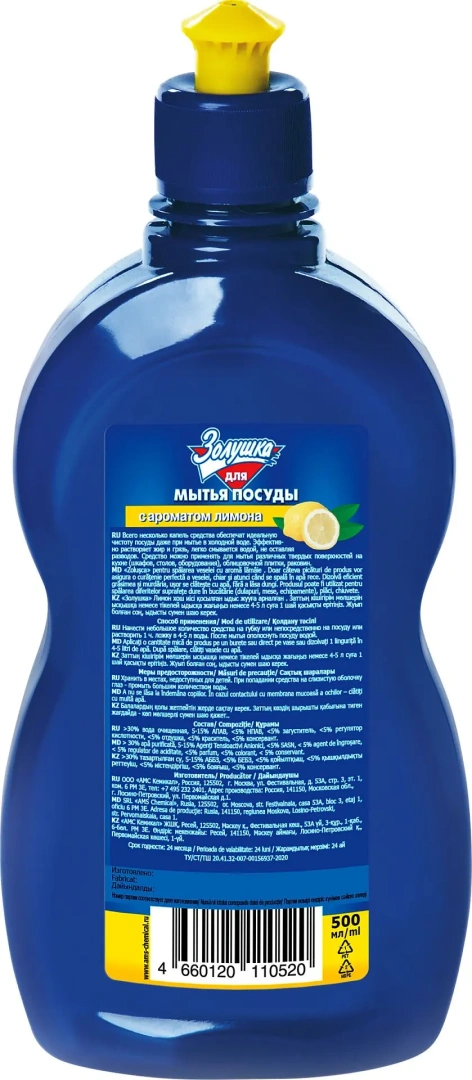 Моющее средство: Золушка 500мл Лимон пуш-пул