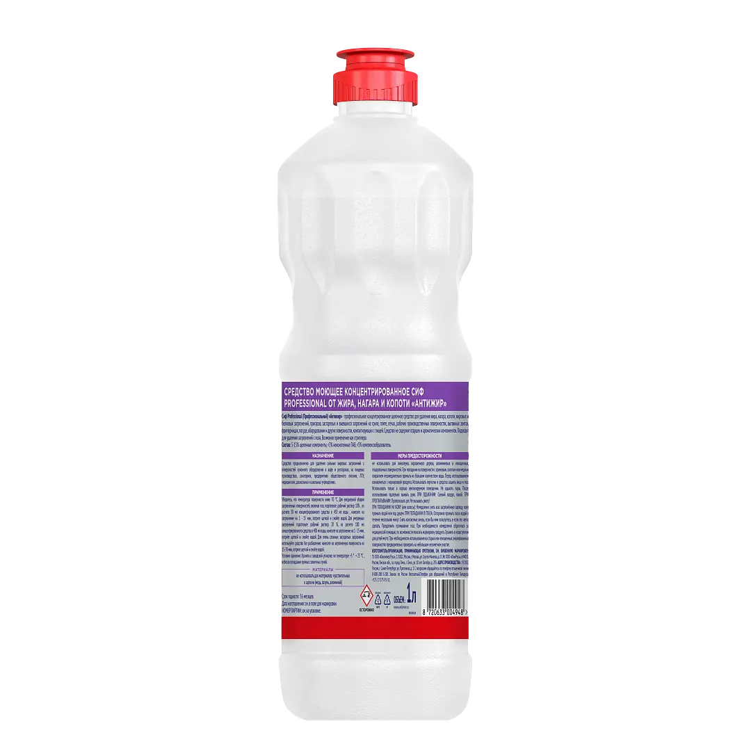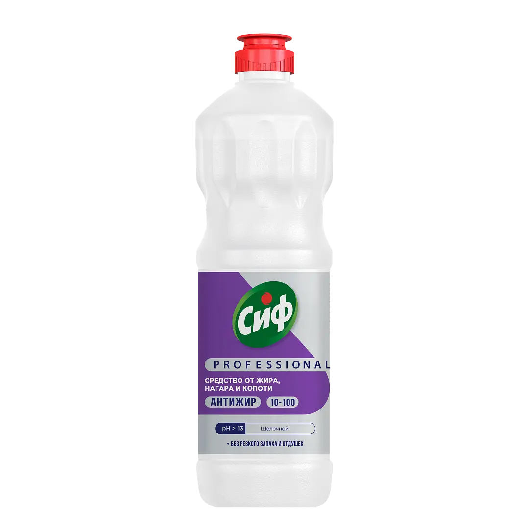 /шт.Сиф Prodessional Антижир - профессиональное щелочное средство для удаления жировых и белковых загрязнений на гриле, плите, вытяжных зонтах и других рабочих производственных поверхностях, в том числе контактирующих с пищей. Удаляет жир, нагар и копоть. Без резкого запаха и отдушек. Подходит для удаления загрязнений с пола.