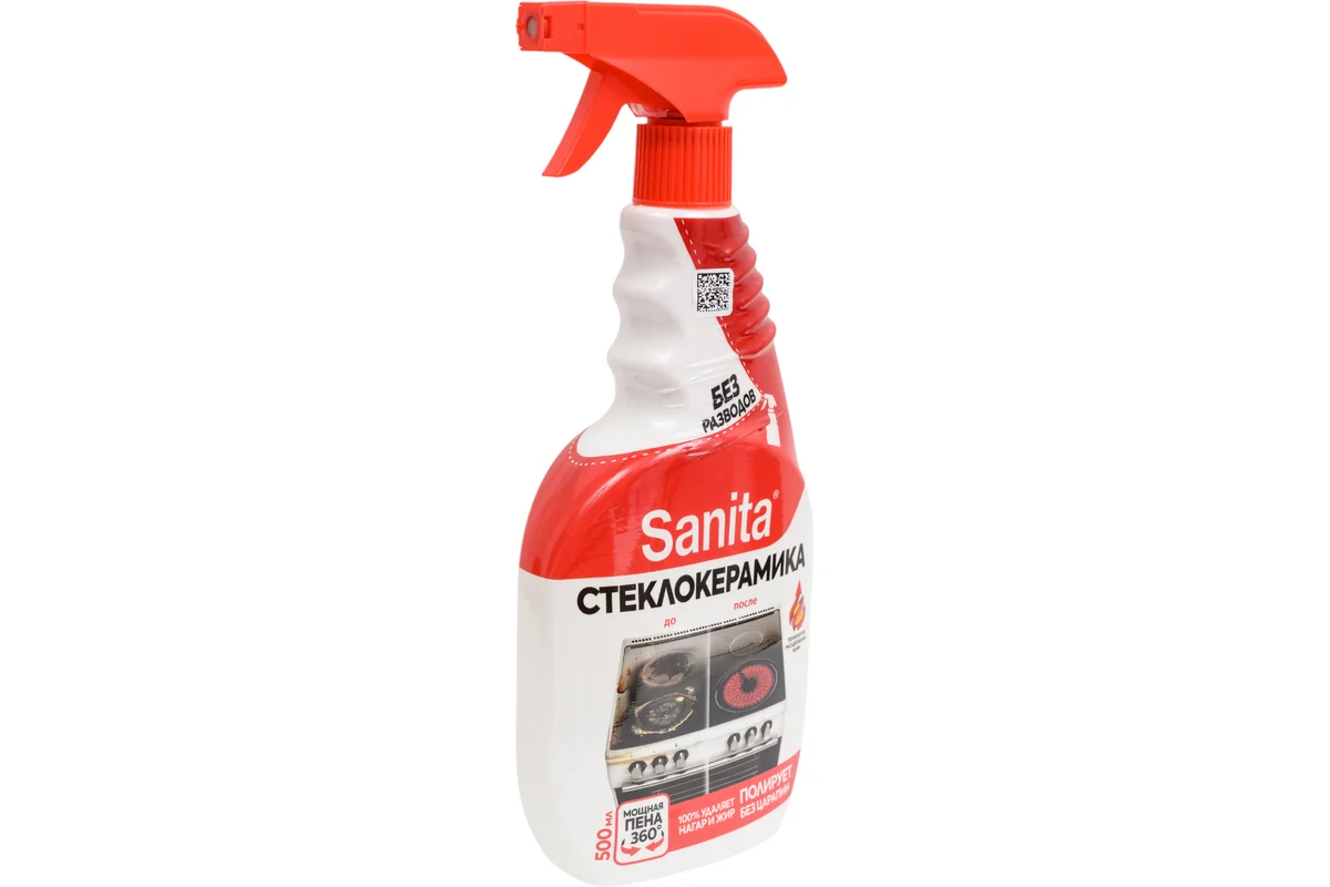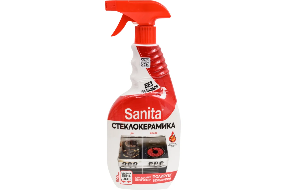/шт.Спрей для стеклокерамики SANITA Антижир 500 мл представляет собой средство для очистки стеклокерамических и чувствительных поверхностей. Легко удаляет загрязнения, не оставляет разводов. Используется для очистки стеклокерамических плит и других деликатных поверхностей. Спрей эффективно удаляет жир и пригоревшие остатки пищи.