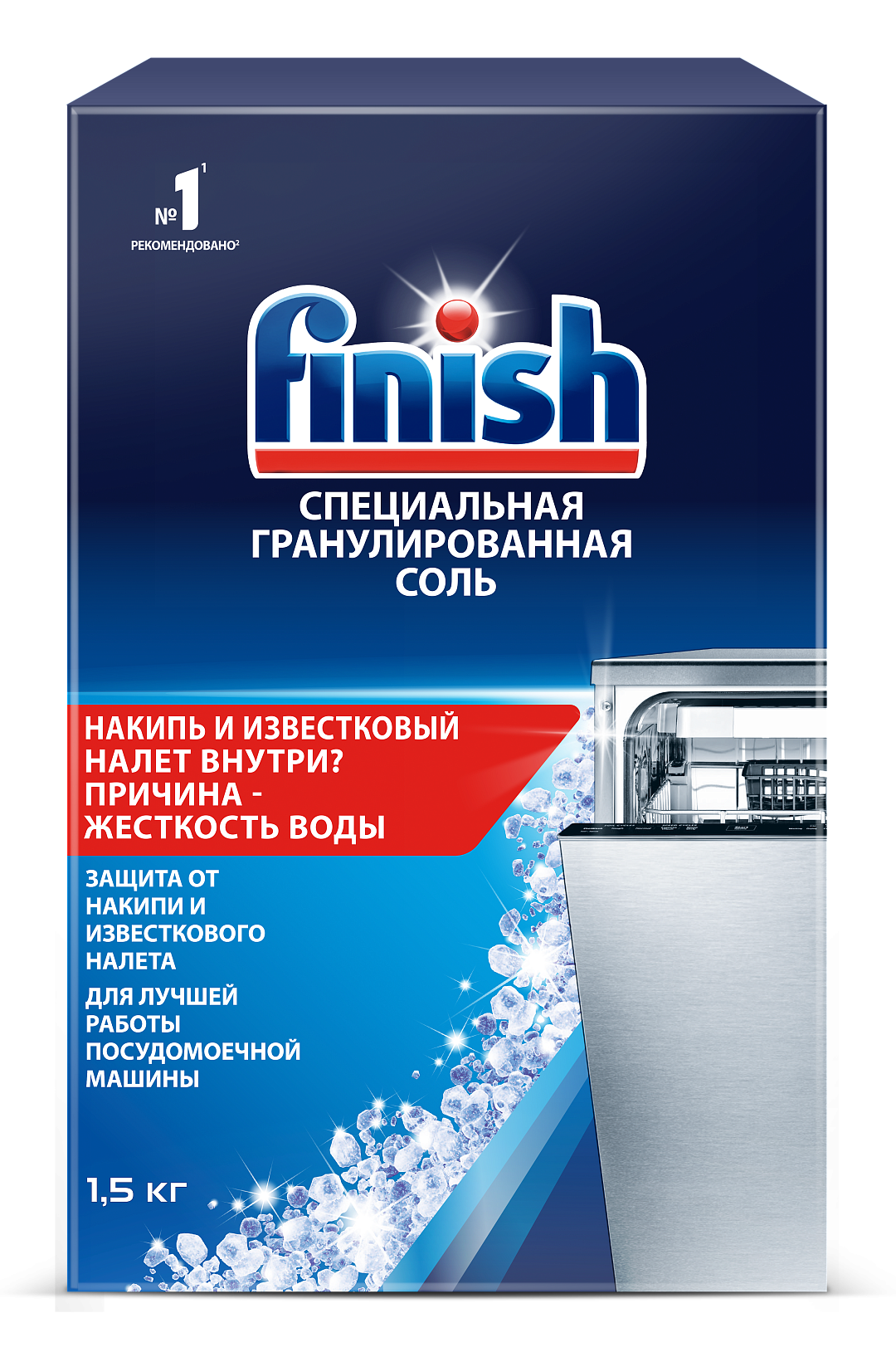 Специальная гранулированная соль Finish для защиты вашей посудомоечной машины от накипи и известкового налета. Для лучшей работы посудомоечной машины.