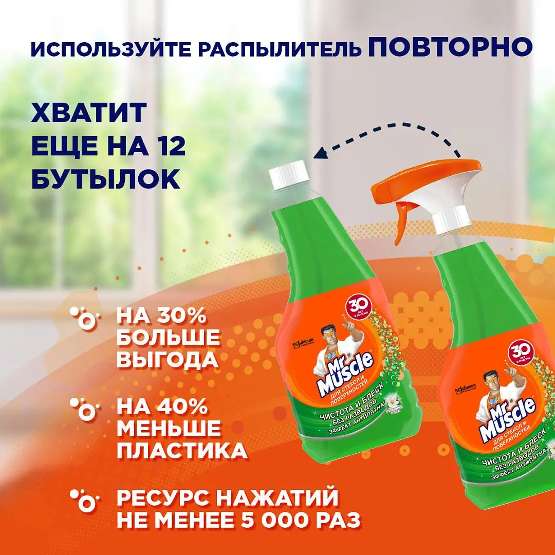 Чистящее средство: МИСТЕР МУСКУЛ 530мл для стекол (зап.блок) Утренняя роса