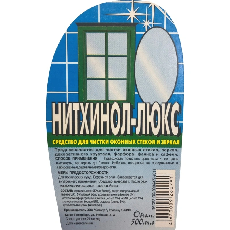 Чистящее средство: НИТХИНОЛ-ЛЮКС 500мл для стекол с триггером