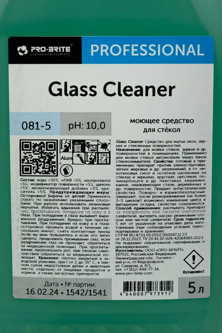 Pro-Brite: Гласс Клинер 5л для стекол и зеркал