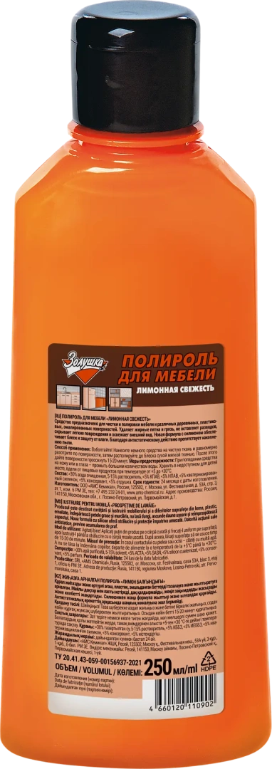 Средство предназначено ухода за полированной и неполированной мебелью, а также для чистки и полировки мебели и различных деревянных, пластиковых, лакированных и окрашенных поверхностей. Легко удаляет жирные пятна и грязь, следы от пальцев, скрывает легкие повреждения и освежает внешний вид. Усиленная формула с силиконом обеспечивает блеск и защиту от влаги и пыли. Благодаря антистатическому и антиадгезионному действию полироль препятствует накоплению пыли.