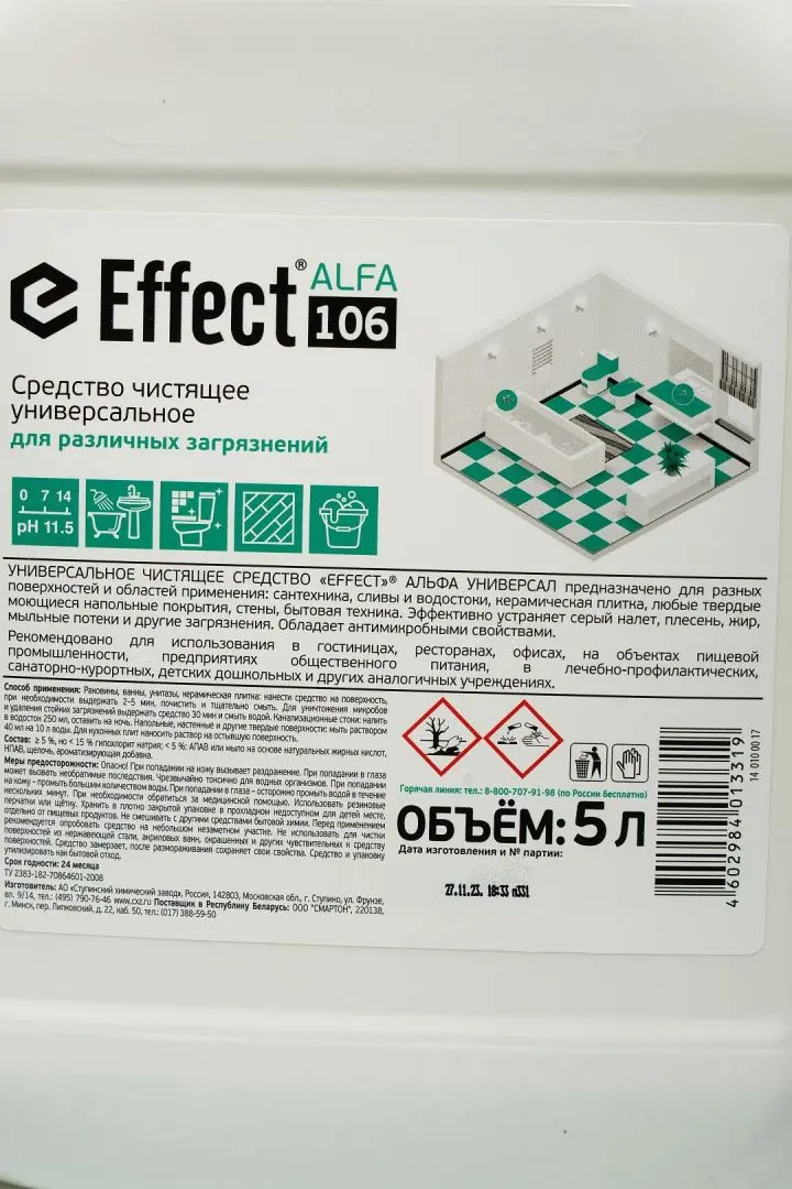 Effect: АЛЬФА-106 5л чистящее ср-во с хлором универсальное