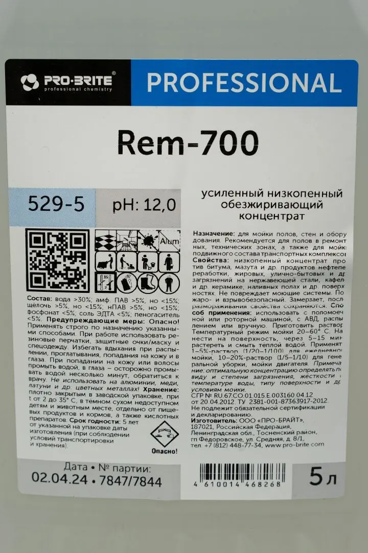 Pro-Brite: Рем-700 5л сильнощелочной усиленный обезжиривающий от продуктов нефтепереработки