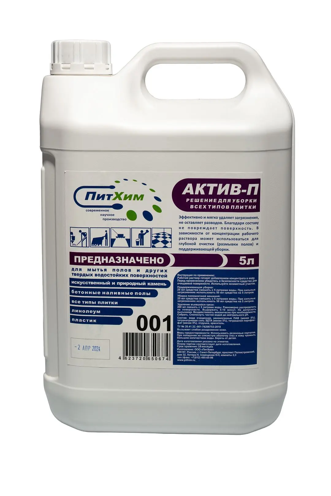 ПитХим: АКТИВ-П 5л универсальное для полов и др.твердых водостойких поверхностей