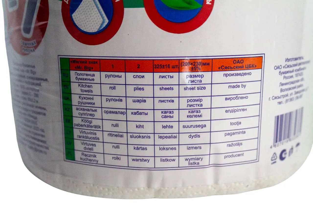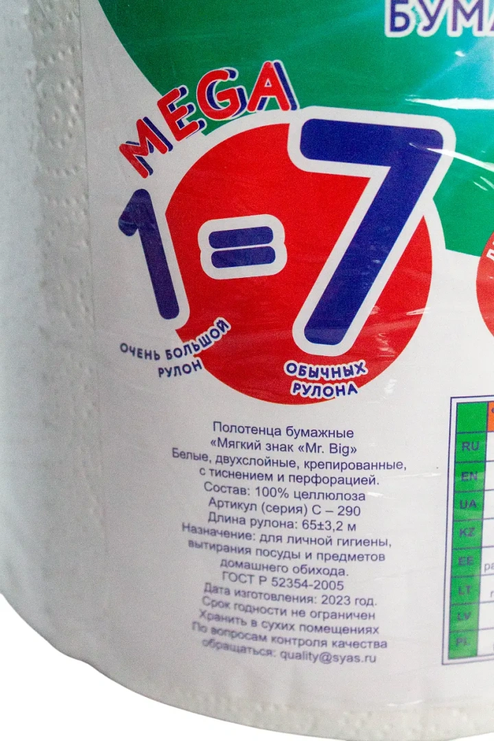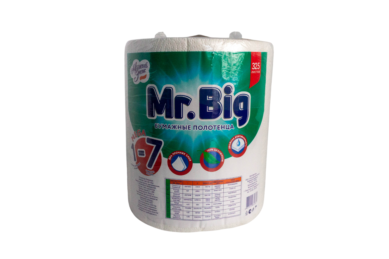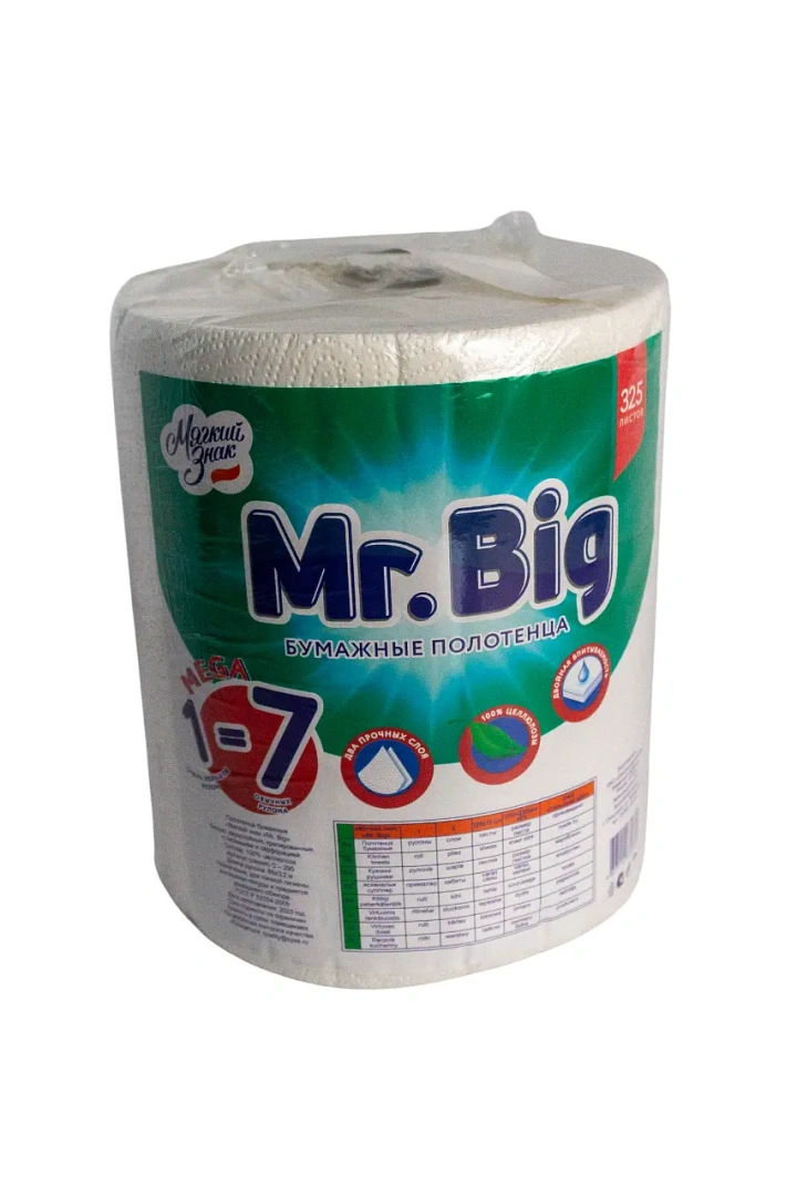 Бумажные полотенца: 2сл 65м целлюлоза цвет белый Мягкий знак Мистер Биг