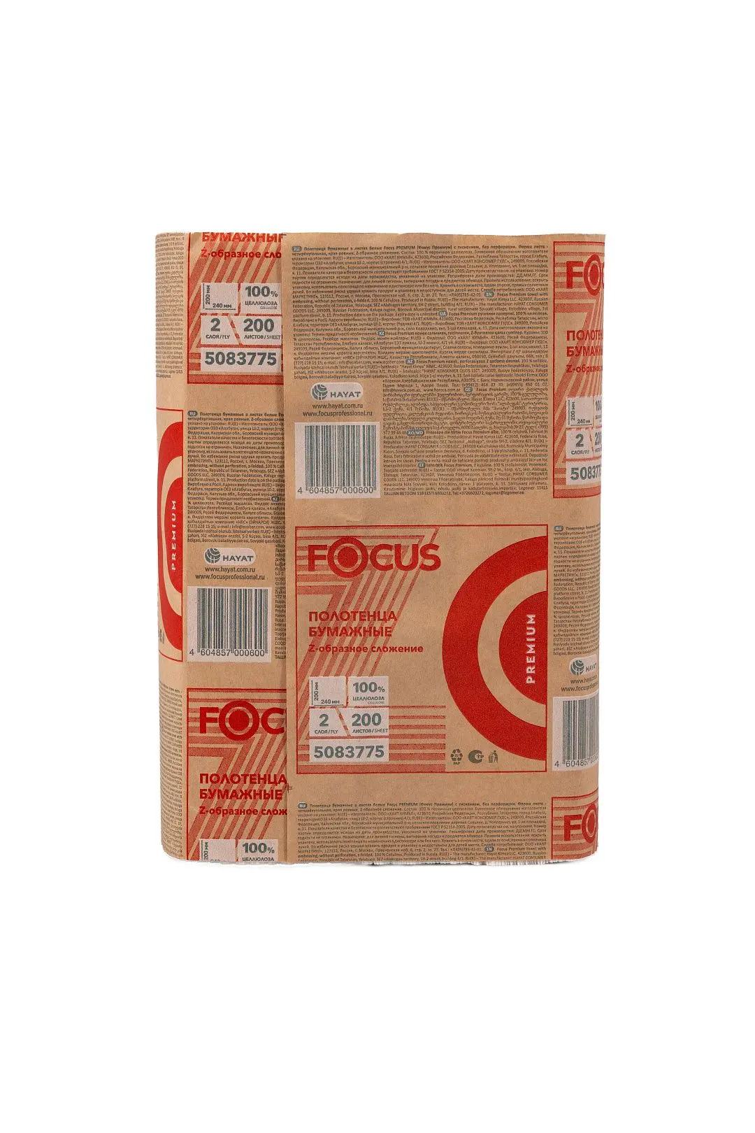 Хаят: Полотенца бумажные Z 2сл 200л 20,0х24см ФОКУС Премиум белые в ПЭ