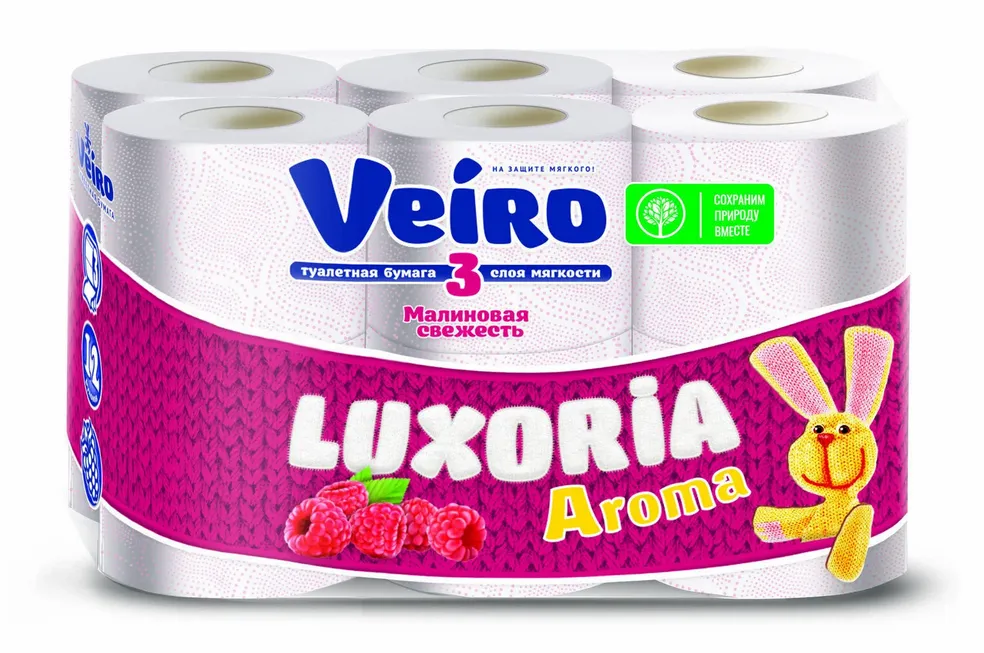 Бумага туалетная: 3сл 17м целлюлоза Арома Малина цвет белый с красным тиснением ВЕЙРО /пач.=12 шт.
