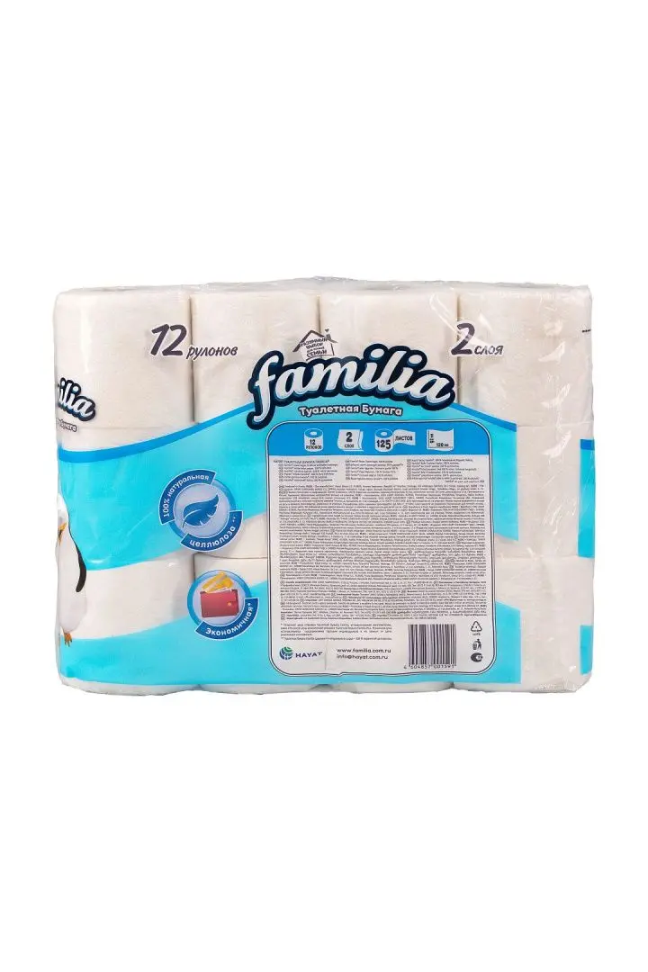 Хаят: Бумага туалетная 2сл 15м ФАМИЛИЯ Классик белая /пач.=12 шт.