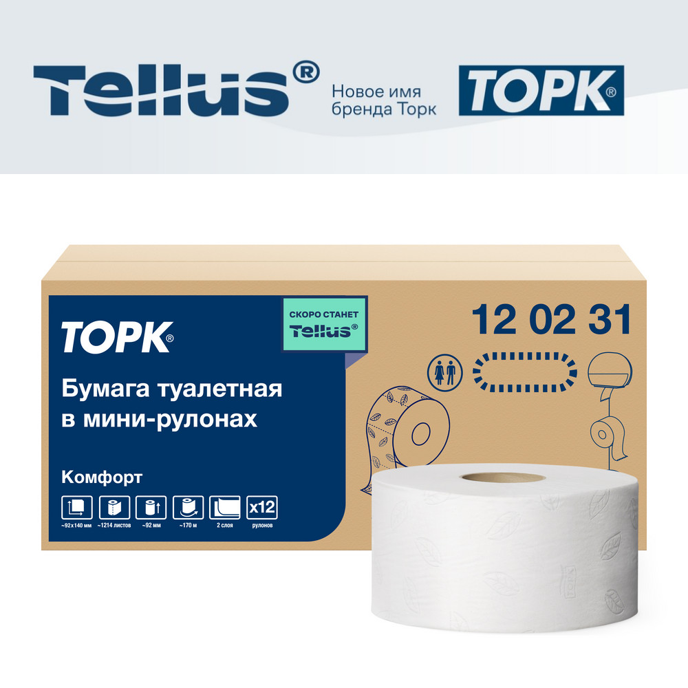 ТОРК: Tellus Бумага туалетная T2 Комфорт 2сл 170м/9,2 белая