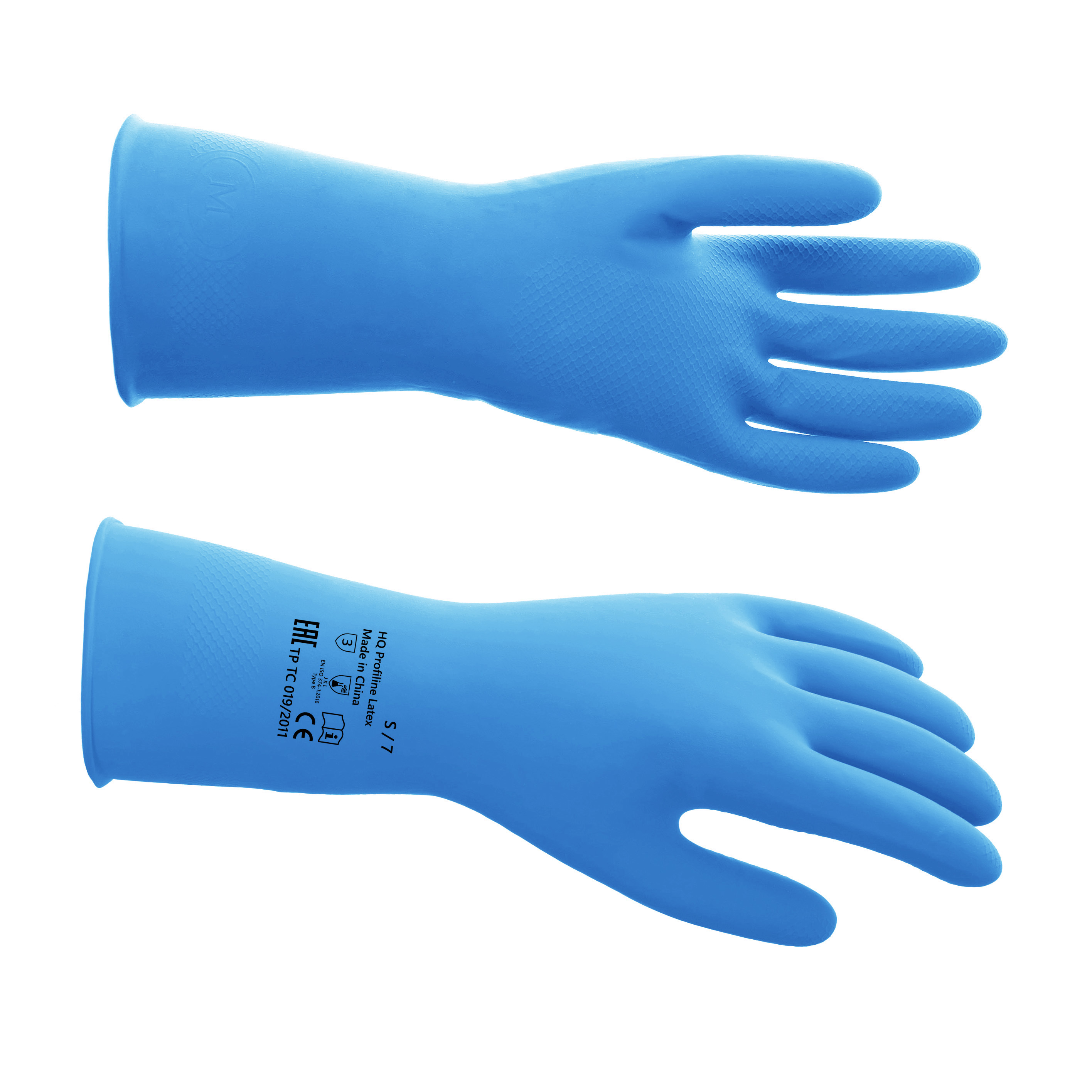 Перчатки резиновые M синие.Материал: латекс 70%, добавки 30%; размер: 315х120х4 мм.Соответствуют I категории - защита от механических факторов; имеют антискользящий рельеф на пальцах и ладони, хлопковое напыление.Соответствуют нормам CE, ЕАС.