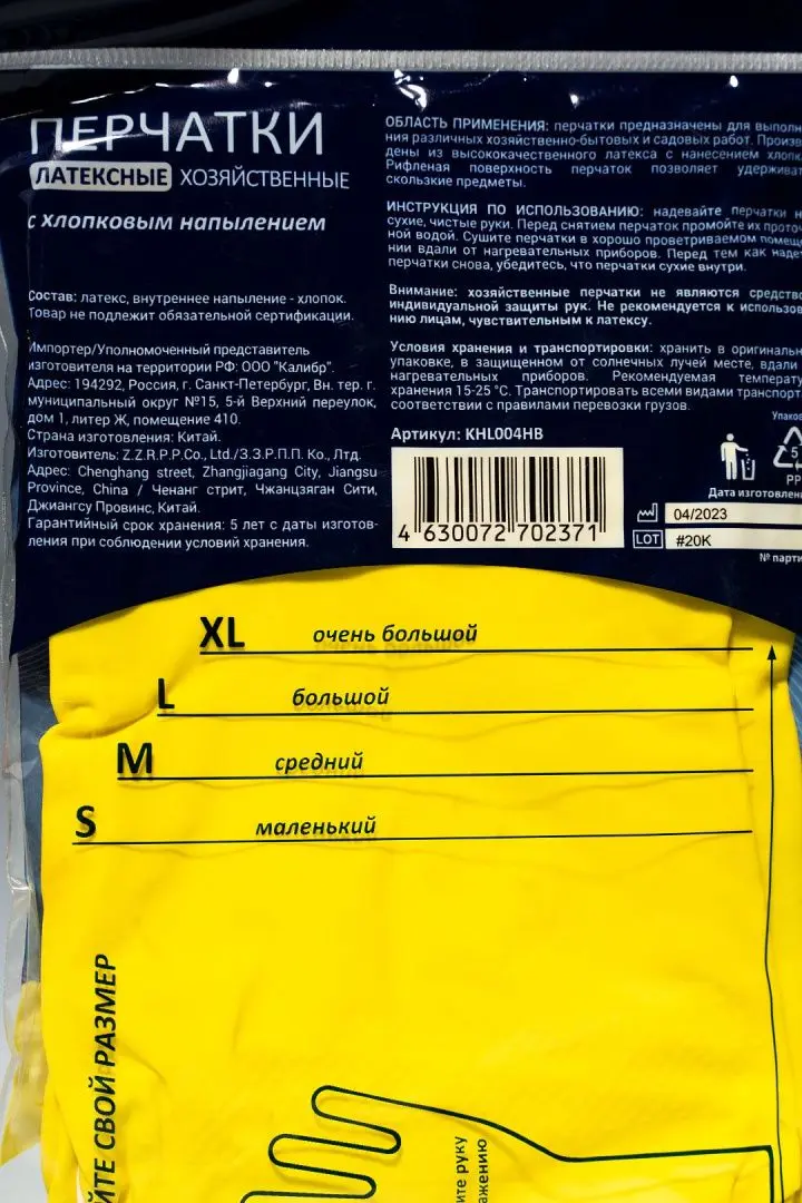 /парПерчатки латексные хозяйственные прочные.Размер XL.С хлопковым напылением.Цвет: желтый.Вес: 50 гр.