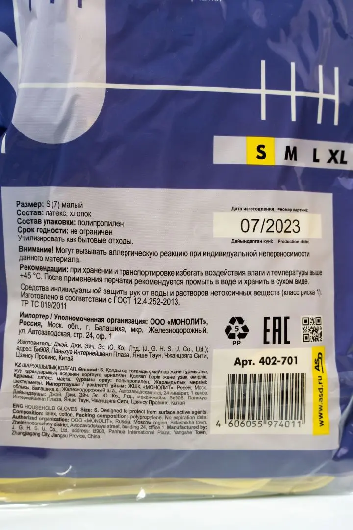 /парПерчатки латексные хозяйственные прочные.Размер S.С хлопковым напылением.Цвет: желтый.Вес: 50 гр.