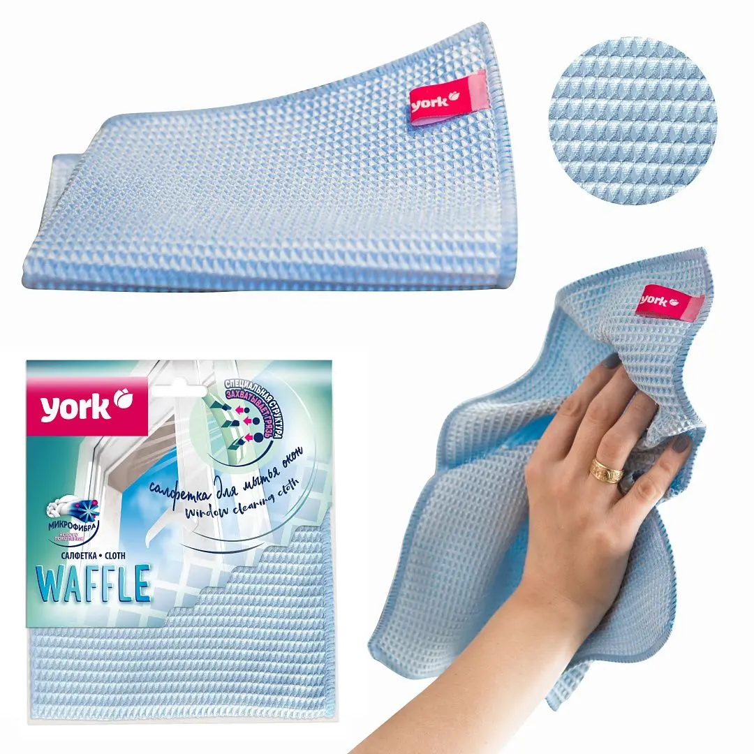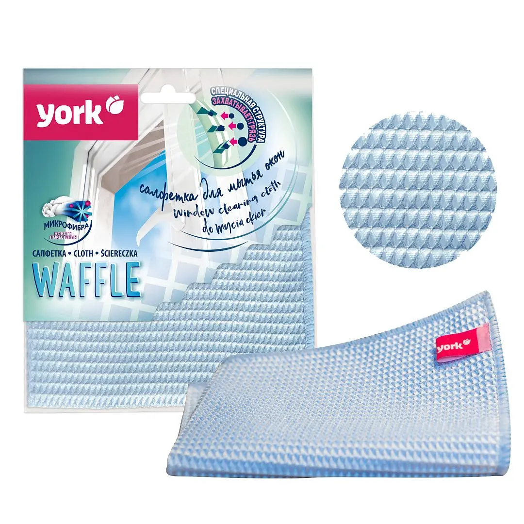 ХозСалфетки: для стекол YORK 35х35 микрофибра вафельная