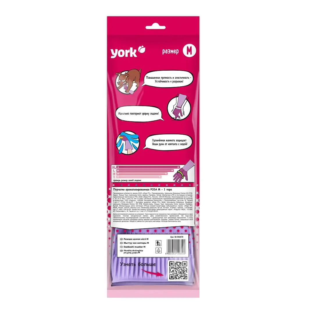 Перчатки: резиновые латексные YORK "Роза" М с удлиненной манжетой ароматизированные