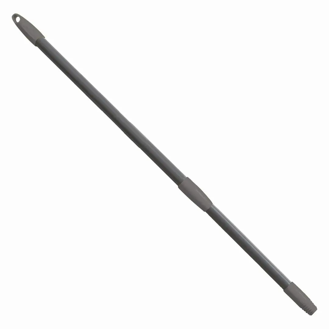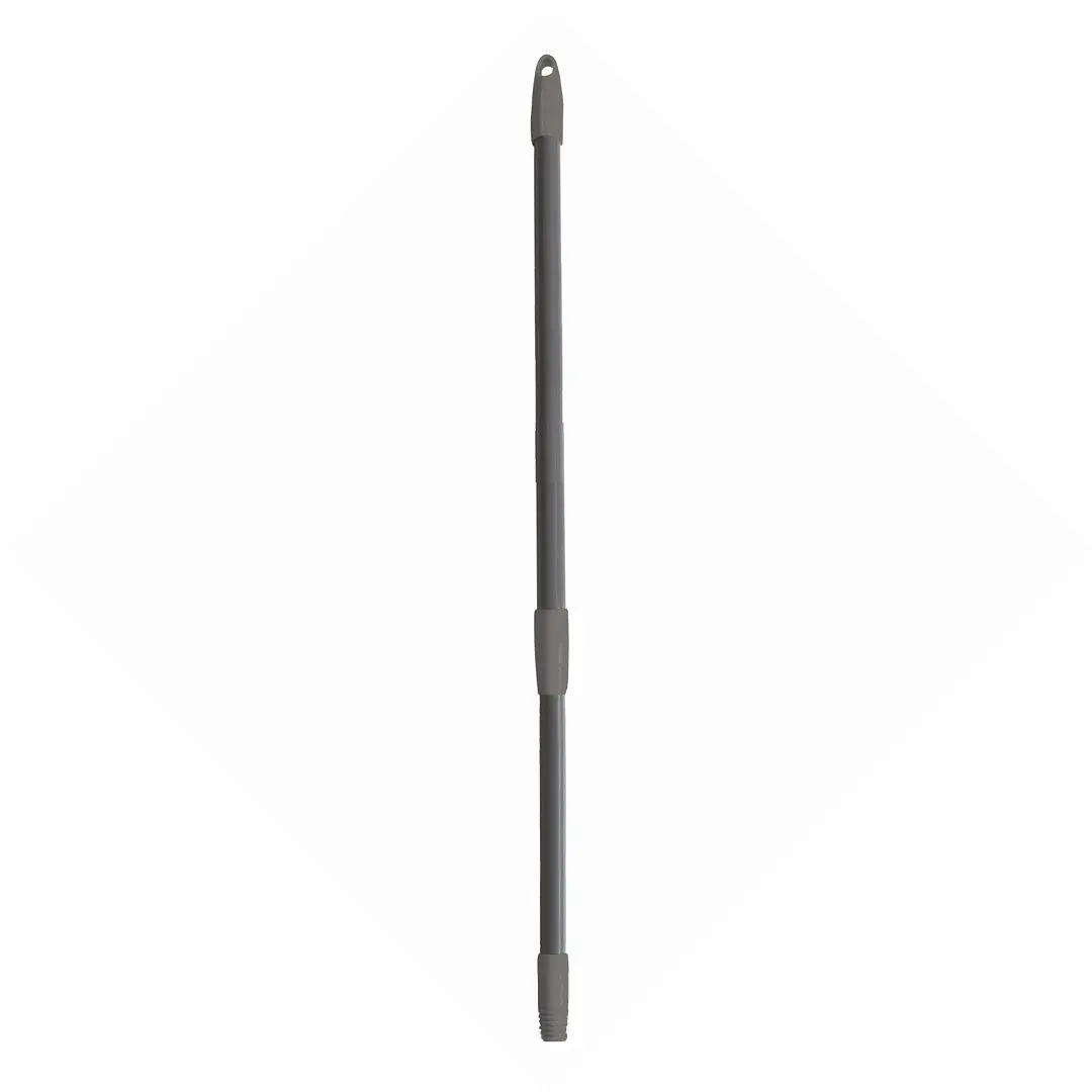 Рукоятка с возможностью регулировки длины под рост человека — для большего комфорта при уборке! Максимальная длина 150 см.Прочная телескопическая рукоятка с возможностью регулировки длины (85 — 150 см). Надежно фиксируется в нужном положении. Изготовлена из металла. Имеет пластиковый наконечник с отверстием для подвешивания и еврорезьбу, которая подходит к любым щеткам и насадкам. В сложенном виде занимает мало места, помещается в шкафу, что облегчает хранение.