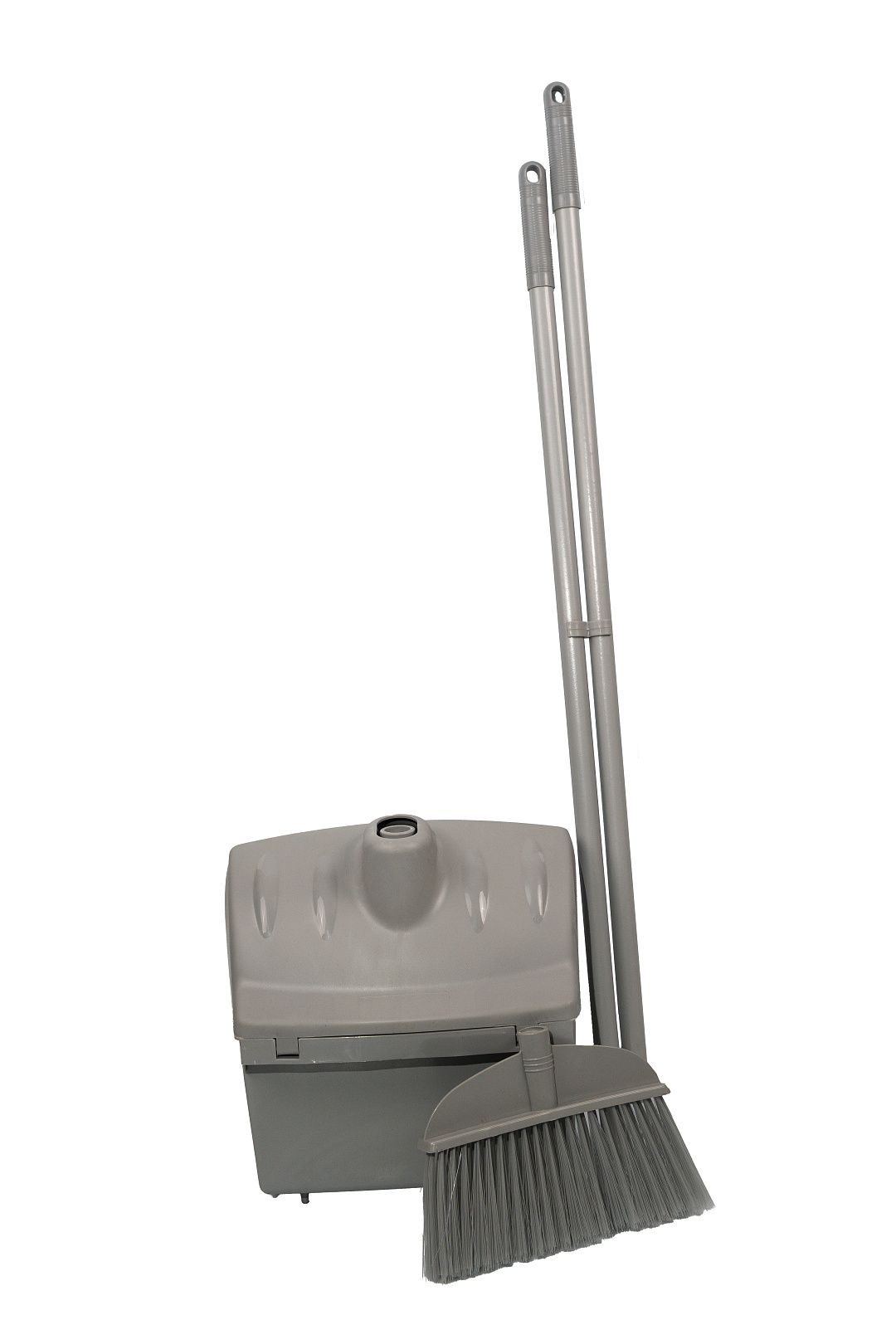 Совок-контейнер пластиковый с щеткой, рукоятки металические с ПВХ покрытием.