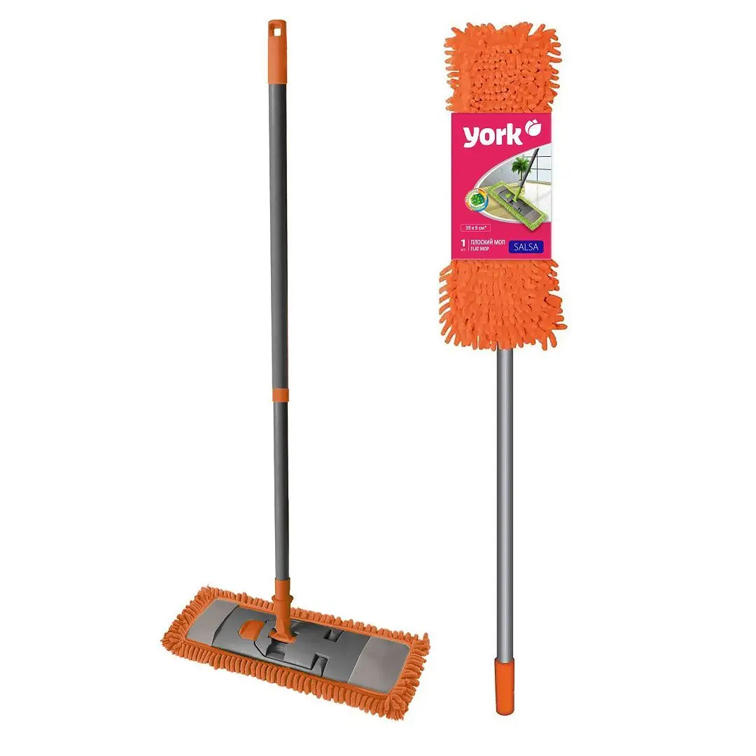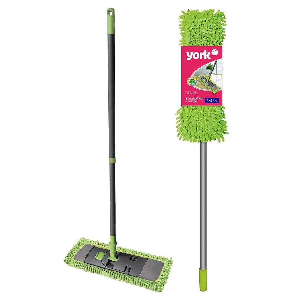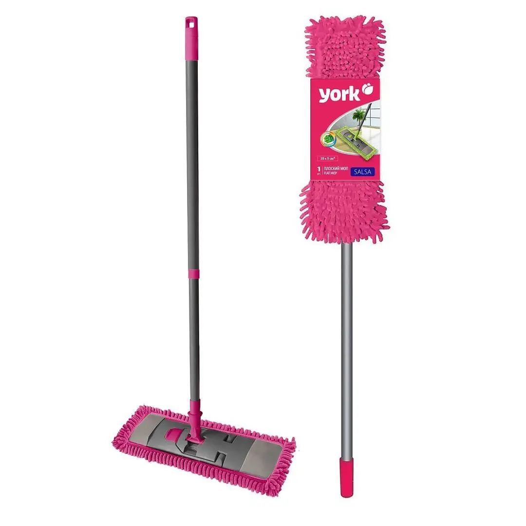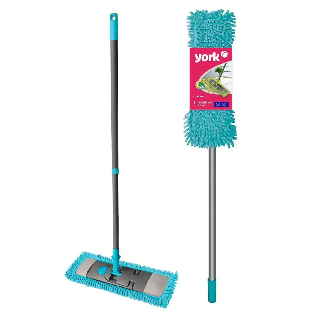 Хозяйственный инвентарь: Швабра YORK Сальса с плоским МОПом микрофибра , телескопический черенок 130 см, еврорезьба