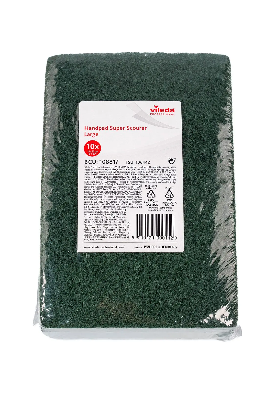 В падах Vileda Professional, каждое волокно покрыто абразивными частицами и смолой, что обеспечивает превосходное очищающее свойство в течение всей жизни пада.