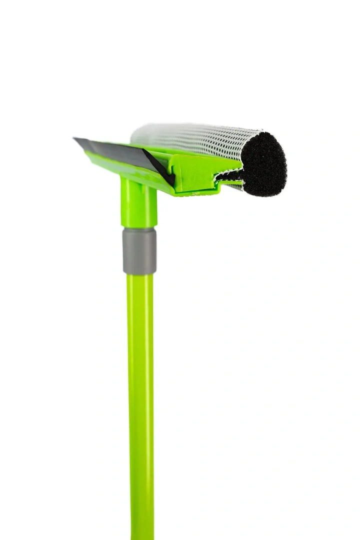 Высококачественный поролон в сетчатой оплётке обеспечивает долговечное использование окномойки. Водосгон адаптируется к форме поверхности и деликатно удаляет влагу без разводов и царапин. Телескопическая рукоятка фиксируется на нужной длине от 75 до 130 см, что повышает удобство использования и позволяет достать до самых высоких балконных дверей. Регулируемая по длине рукоятка облегчает уборку труднодоступных оконных створок, которые невозможно открыть, делая мытье окон более безопасным. Швабра-окномойка предназначена для мытья высоких окон и балконных дверей дома, на даче или в офисе. Возможно использовать для мытья автомобиля. Съемная рукоятка в сложенном виде не занимает много места при хранении.