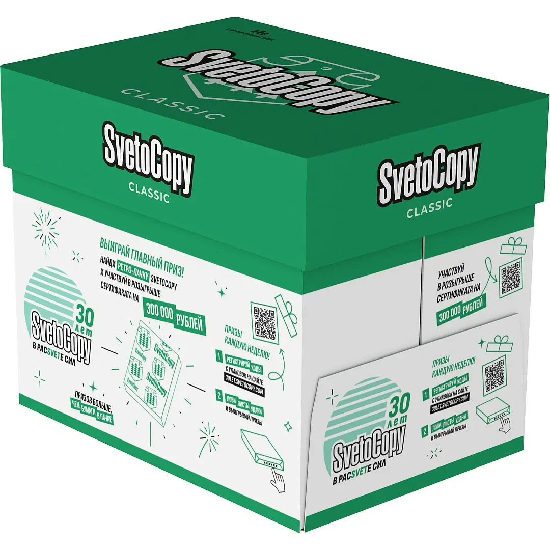 /шт.Бумага SvetoCopy формата А4, марка C, 80 г/кв.м, 500 листов предназначена для работы в принтерах и копировальных аппаратах.