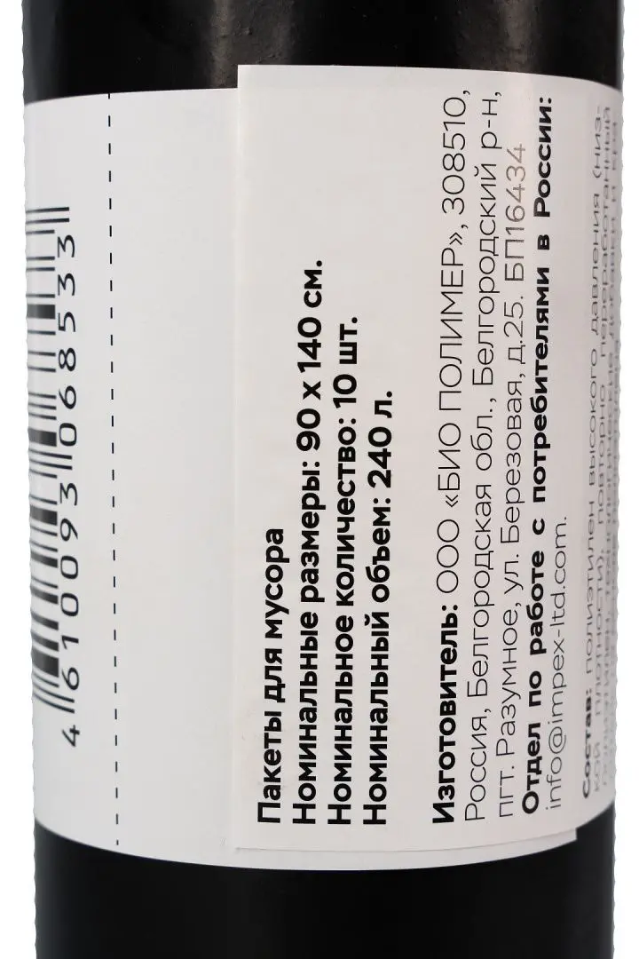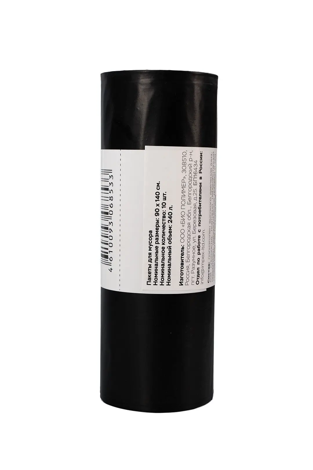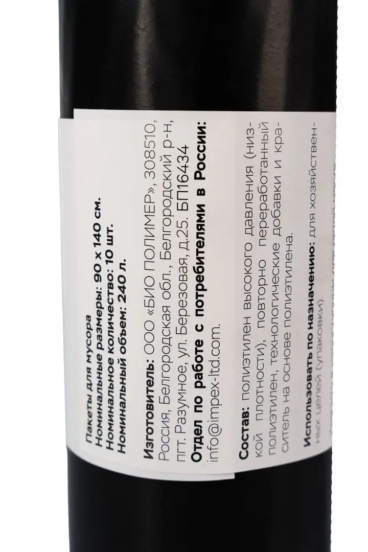 Мешки для мусора: 240л 90х140 ПВД 50мкм черные /рул.=10 шт.