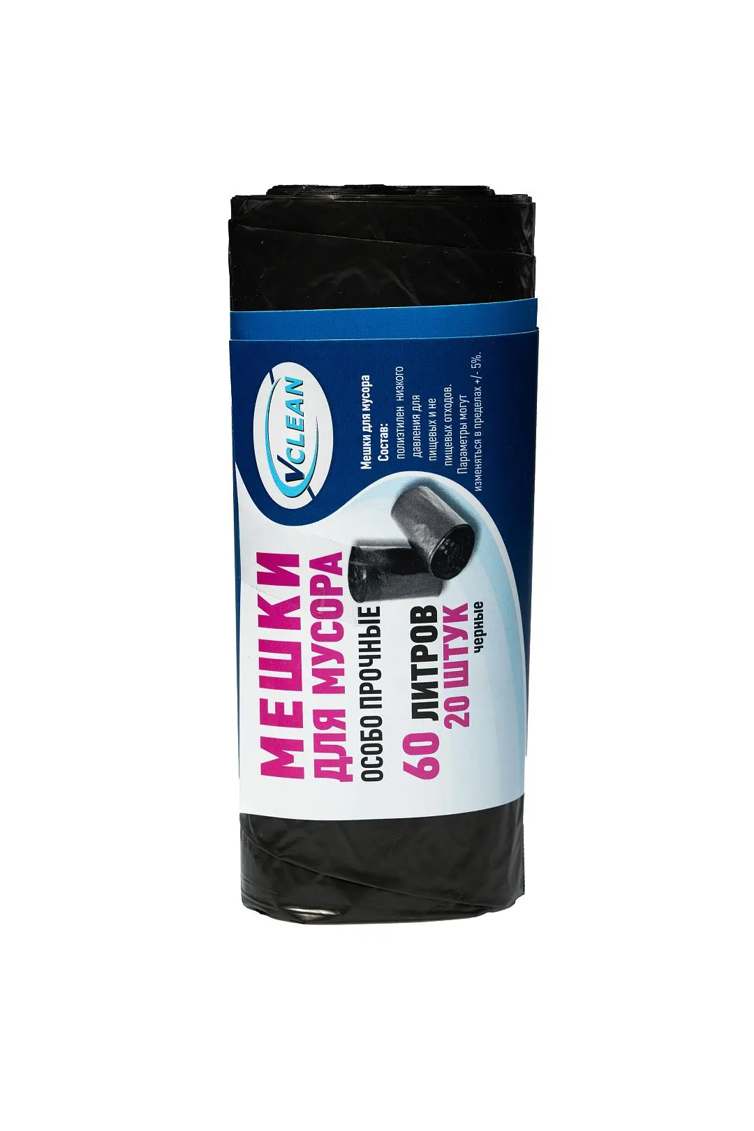 Мешки для мусора: VCLEAN Professional особо прочные 60 литров, размер 60х70 см черные, рулон 20 шт.Материал: полиэтилен низкого давления.