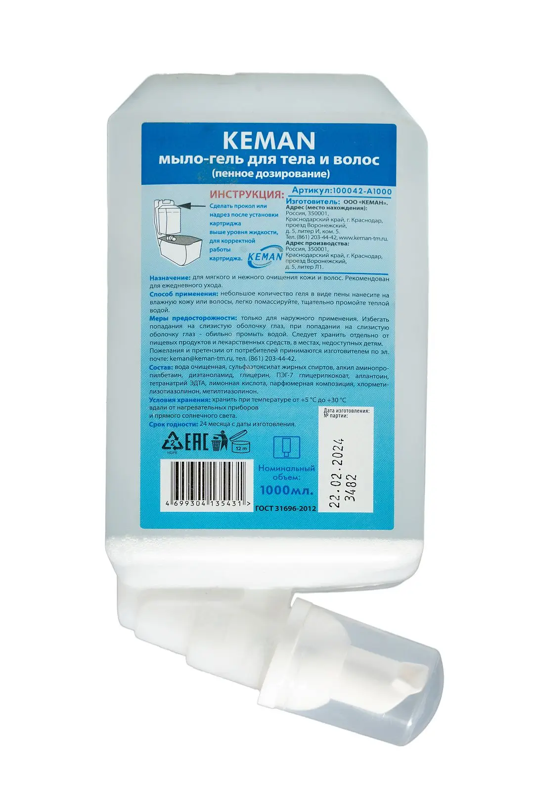 КЕМАN "Мыло-гель для тела и волос" (пенное дозирование), картридж 1000 мл для диспенсеров Aquarius.