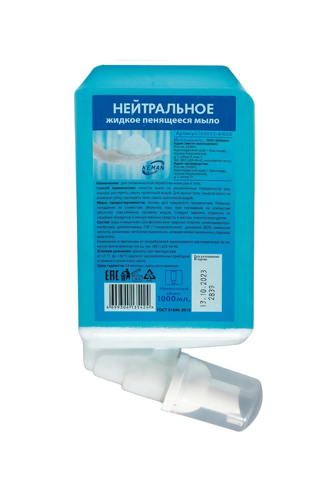 Кеман: Мыло жидкое пенящееся 1000 мл нейтральное в картридже бирюзовое