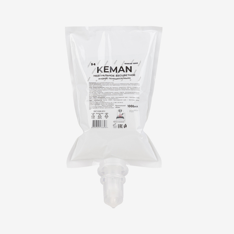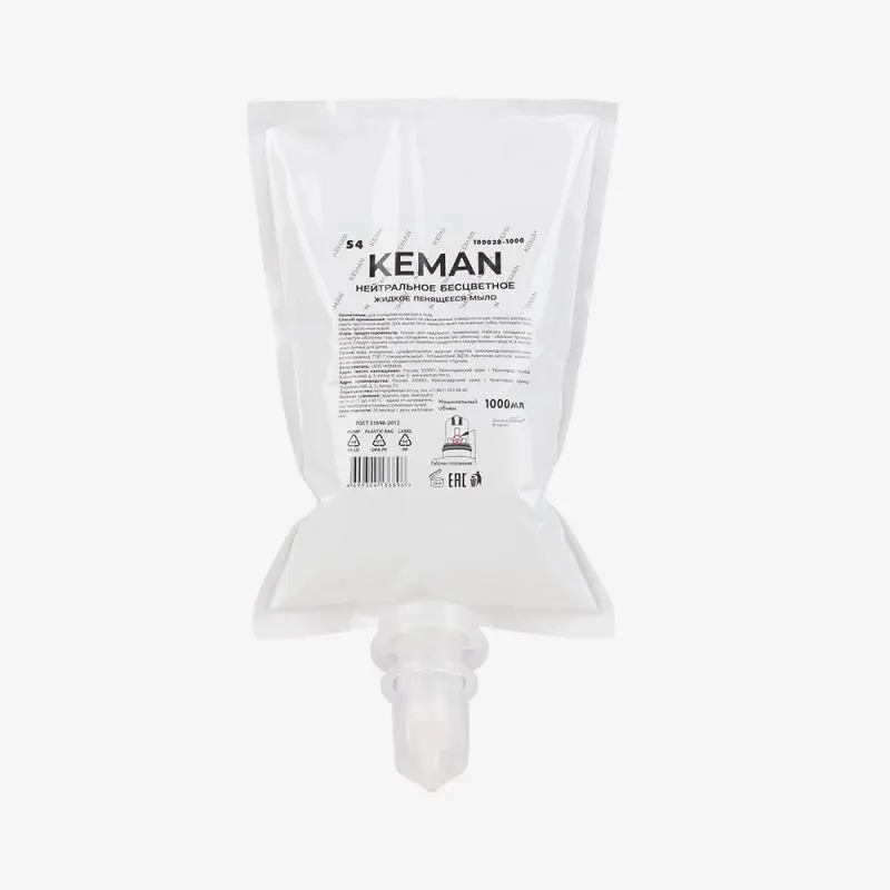 Кеман: Мыло жидкое пенящееся 1000 мл нейтральное в картридже бесцветное с отдушкой (S4)