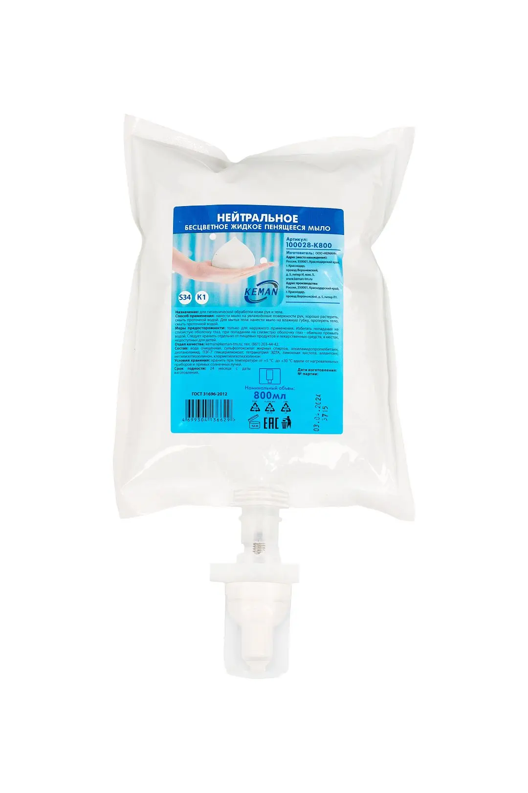 Кеман: Мыло жидкое пенящееся 800 мл нейтральное в картридже бесцветное