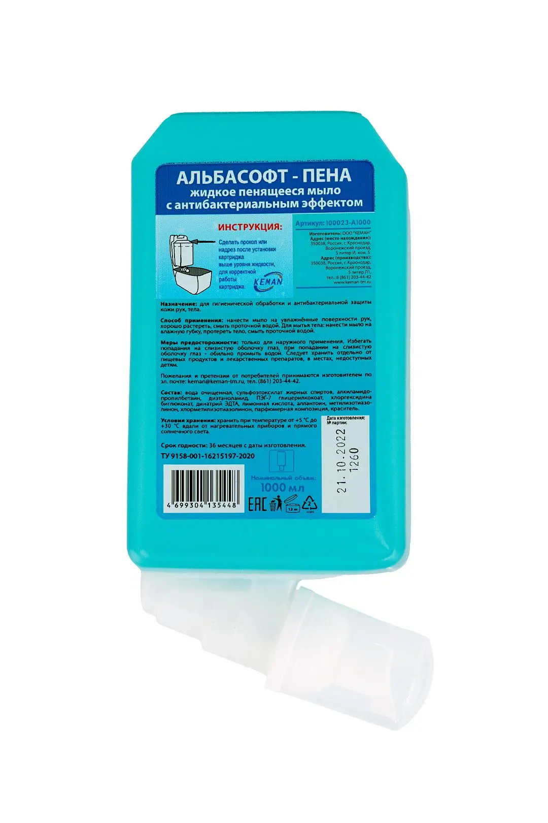 Кеман: Мыло жидкое пенящееся 1000мл АЛЬБАСОФТ антибактериальное в картридже бирюзовое Aquarius, А4,А5