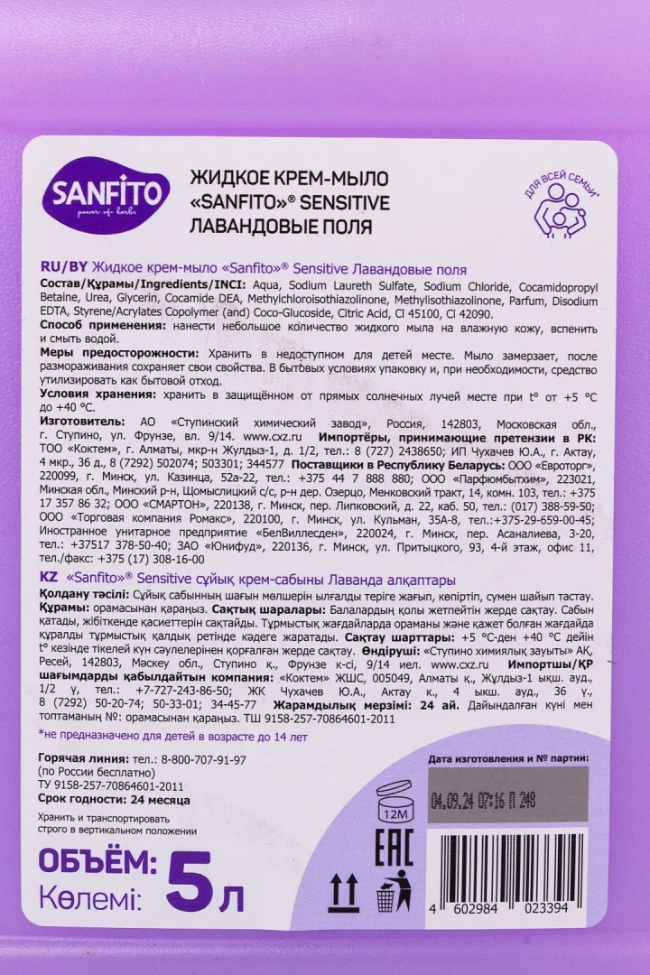 Effect: САНФИТО 5л жидкое крем-мыло Лавандовые поля
