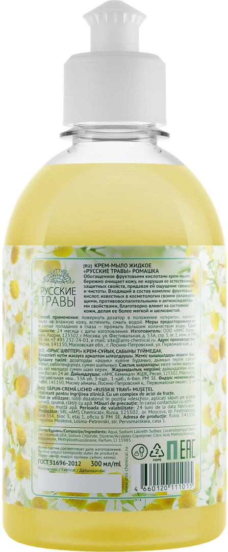 Мыло жидкое: АМС Русские травы 300мл крем-мыло Ромашка пуш-пул