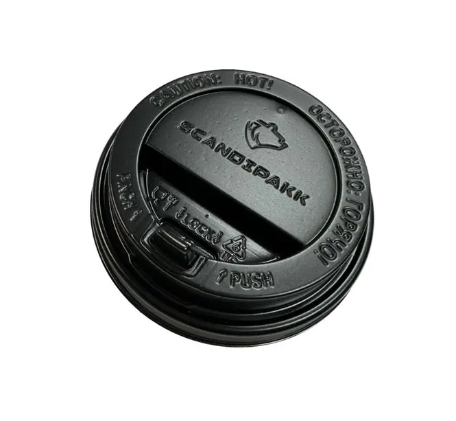 Одноразовая продукция: Крышка к стакану бумажному d=80мм с питейником черная Скандипакк /пач.=100 шт.
