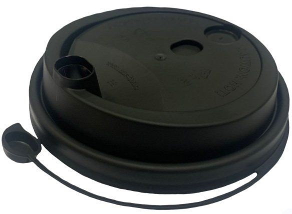 Крышка к стакану бумажному d=90мм с питейником черная матовая , пачка 50 шт.