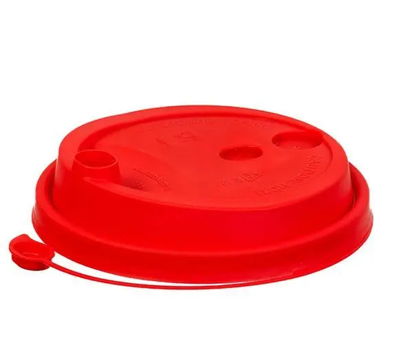 Одноразовая продукция: Крышка к стакану бумажному d=80мм с питейником (заглушка) ПП красная /пач.=50 шт.