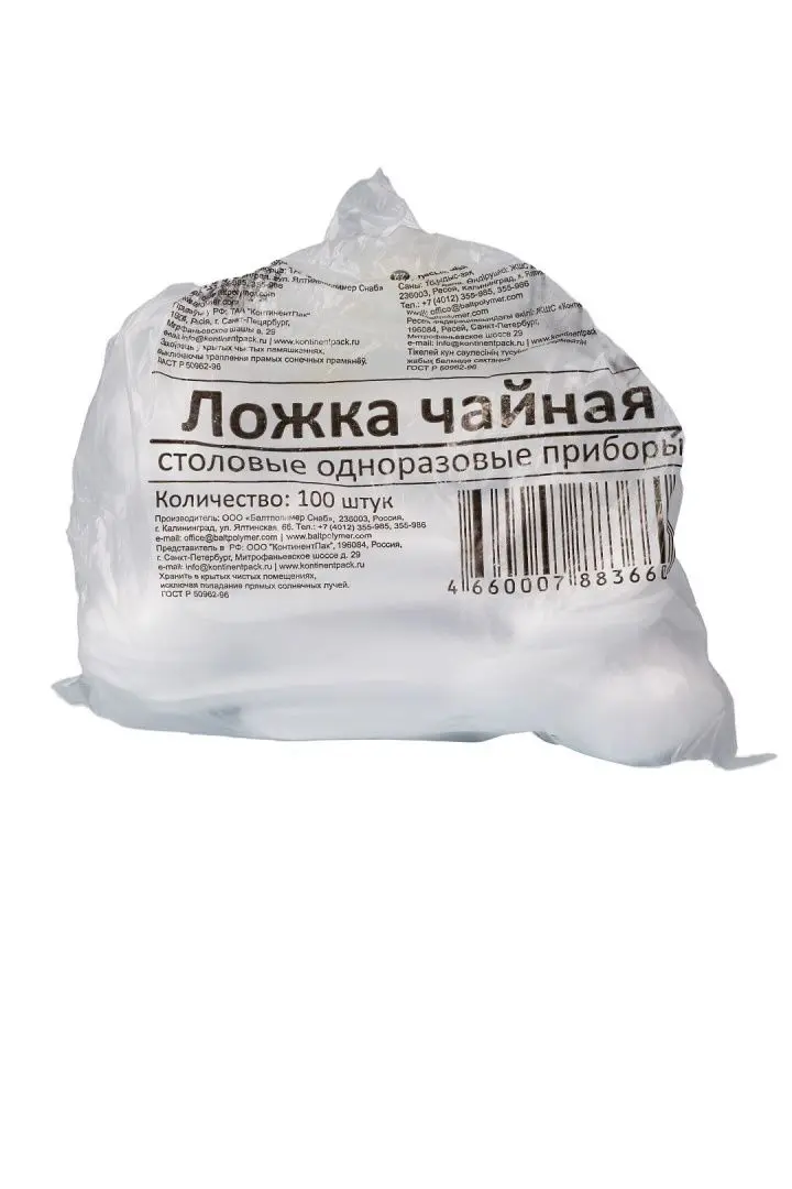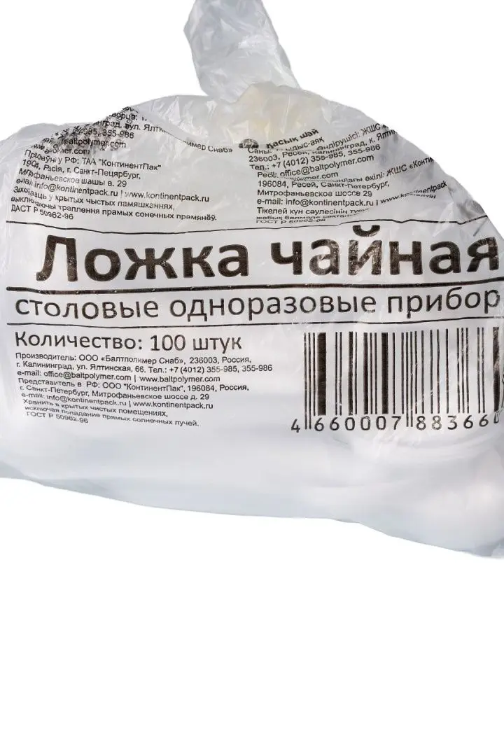 Ложка одноразовая чайная белая, пачка 100 шт.