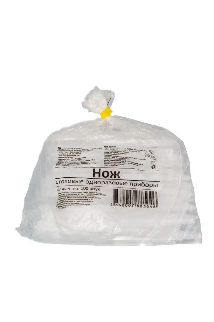 Одноразовая продукция: Нож столовый 165мм белый /пач.=100 шт.