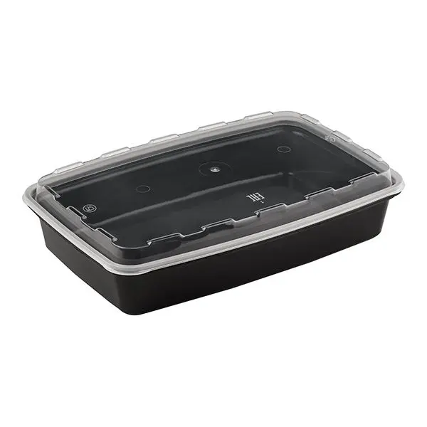 Одноразовая продукция: Контейнер пластиковый прямоугольный 1300мл 250х168х50мм черный с крышкой /пач.=100 шт.