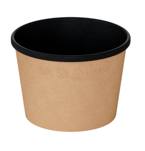 Одноразовая продукция: Контейнер бумажный (супник) 380мл77/102х72мм OneBowl UltraProof круг.без кр.крафт/черн /пач.=25 шт.