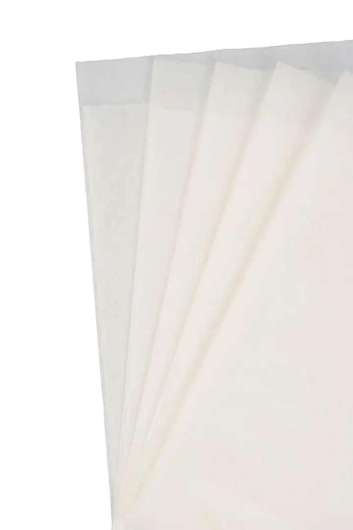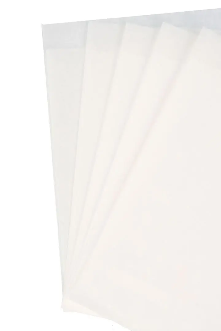 Изготовлен из влаго и жиропрочной бумаги, белого цвета, размер 140х160 мм.